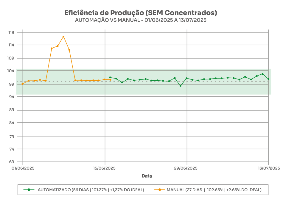 Com a Automação, a jornada de trabalho dos colaboradores é otimizada, podendo reduzir em até 3 horas diárias. Além disso, o sistema avalia o desempenho individual dos tratadores, promovendo melhorias contínuas e maior aproveitamento da equipe.