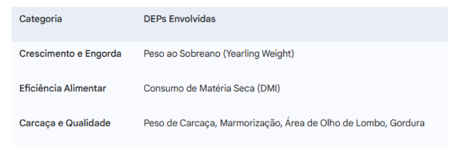As DEPs que fundamentam o cálculo do Beef Value abrangem:
